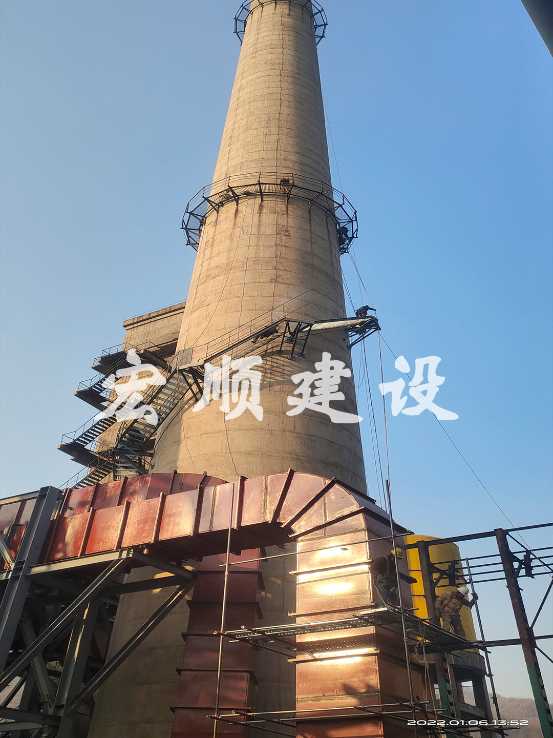 熱烈祝賀本溪水泥煙囪爬梯平臺更換安裝順利開工