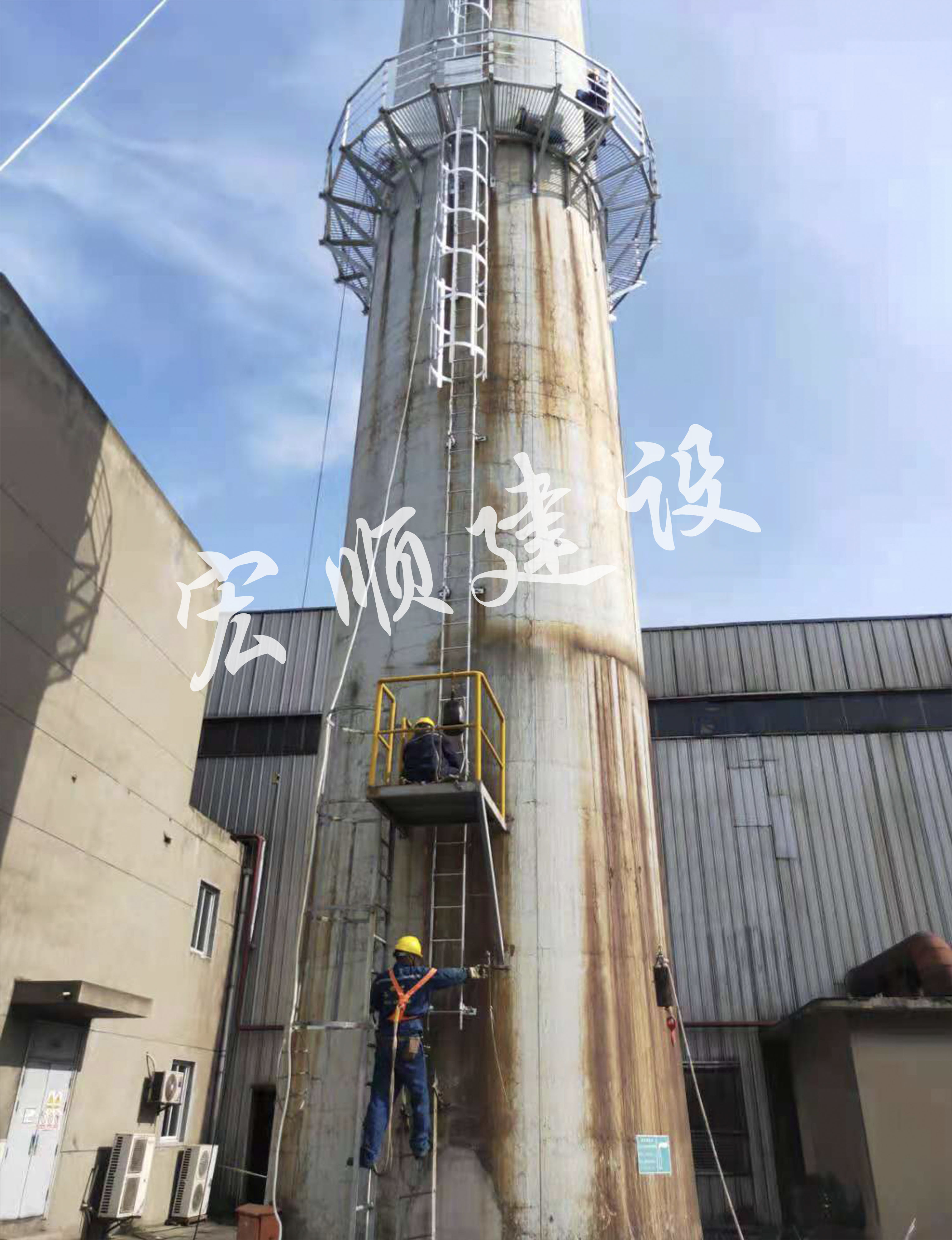 熱烈祝賀常州煙囪直爬梯平臺安裝工程順利竣工